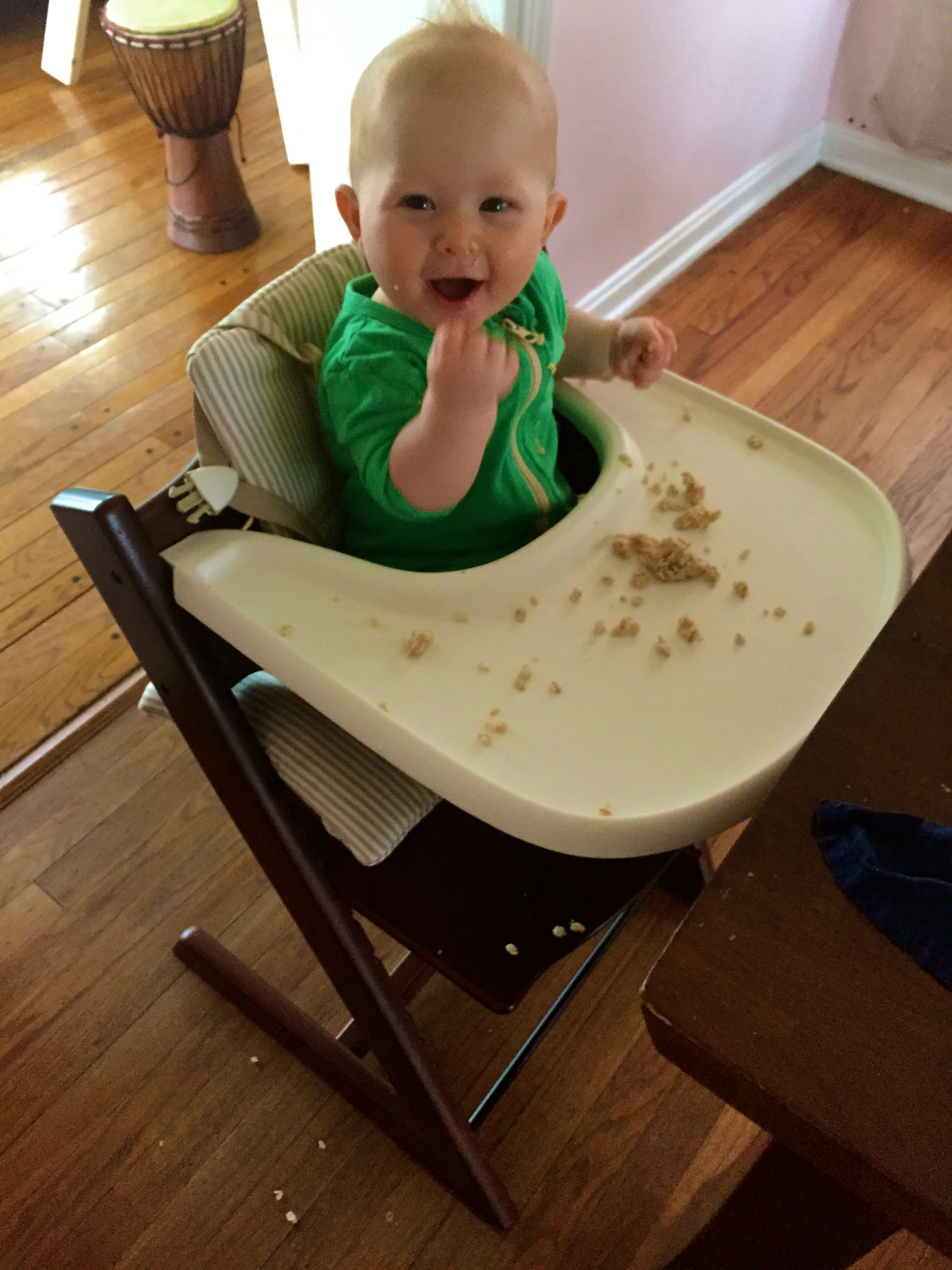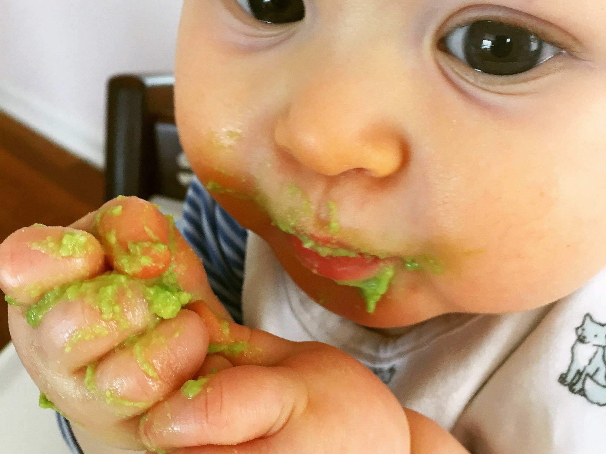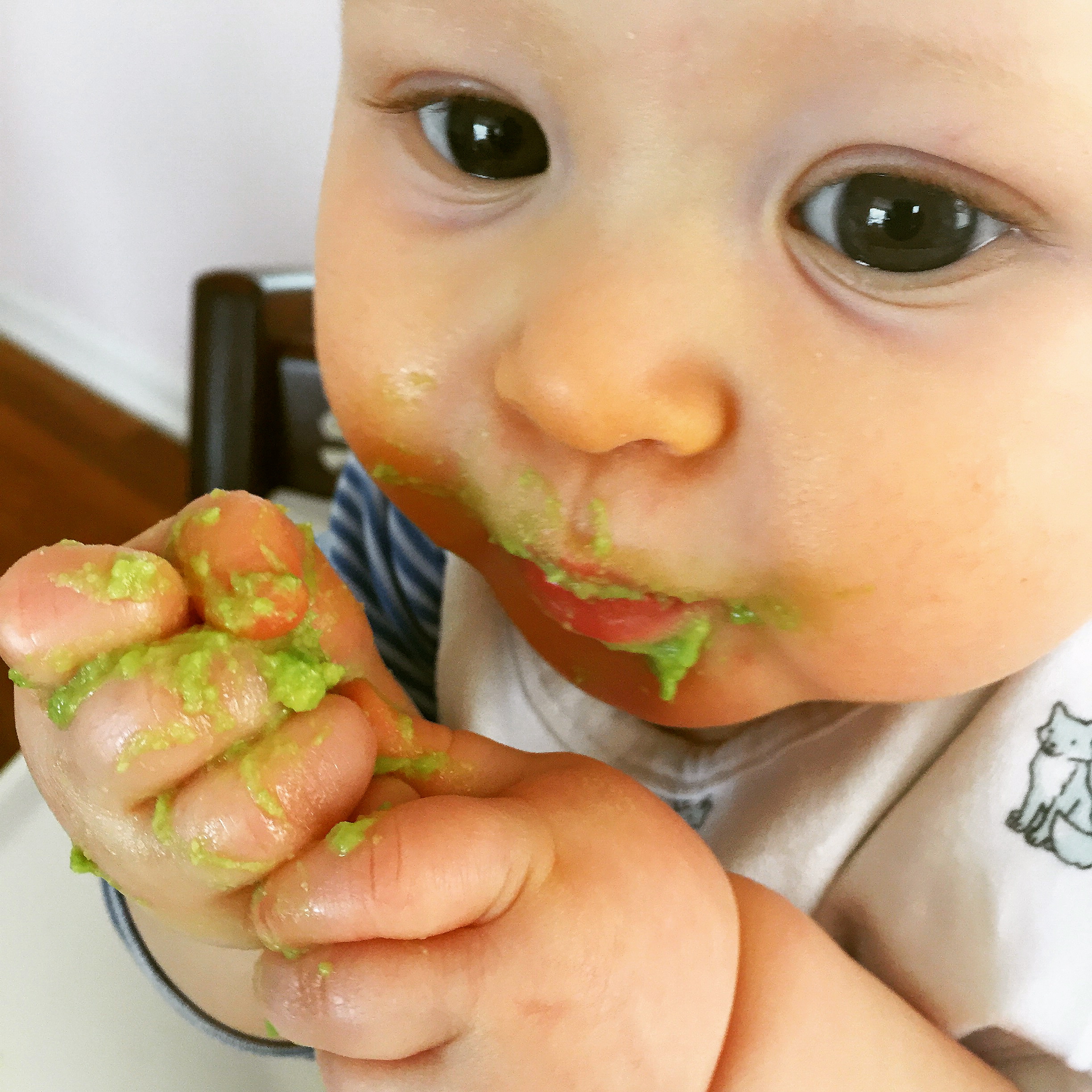 That is essentially the positive outcome of baby-led weaning – your baby shares mealtime with you. Baby-led weaning also helps them understand their hunger and satiety. They will slowly but surely eat more foods and slowly but surely take less milk. But, for now, Rad’s diet is still mainly breast milk (as it, or formula, should be for your baby at this age) and that is where all of his nutrients are still coming from. Which means when 90% of the food ends up on the floor rather than 100% of it feeding their sweet little bellies, you don’t have to worry so much. Although, that never seems to be a problem with Rad. If he had the means to, he’d reach down and grab whatever scrap had fallen on the floor to promptly shove it back into his mouth.