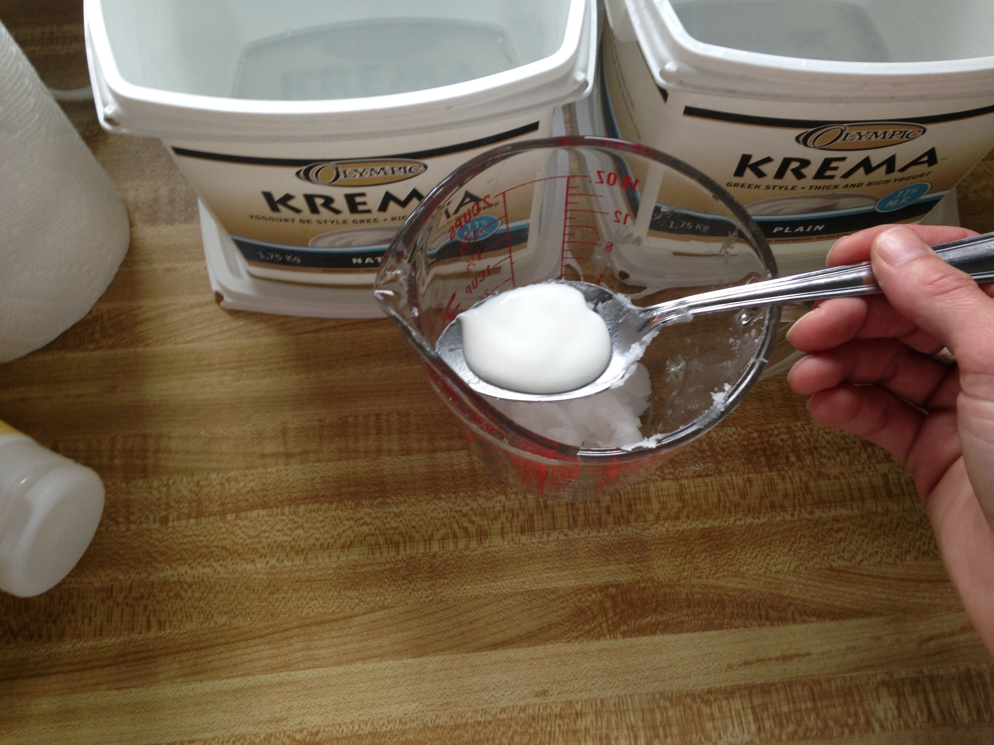 Step 3: Add 2 cups of hot water to the coconut oil and baby wash mixture. Stir well to melt the coconut oil and dissolve the baby wash.