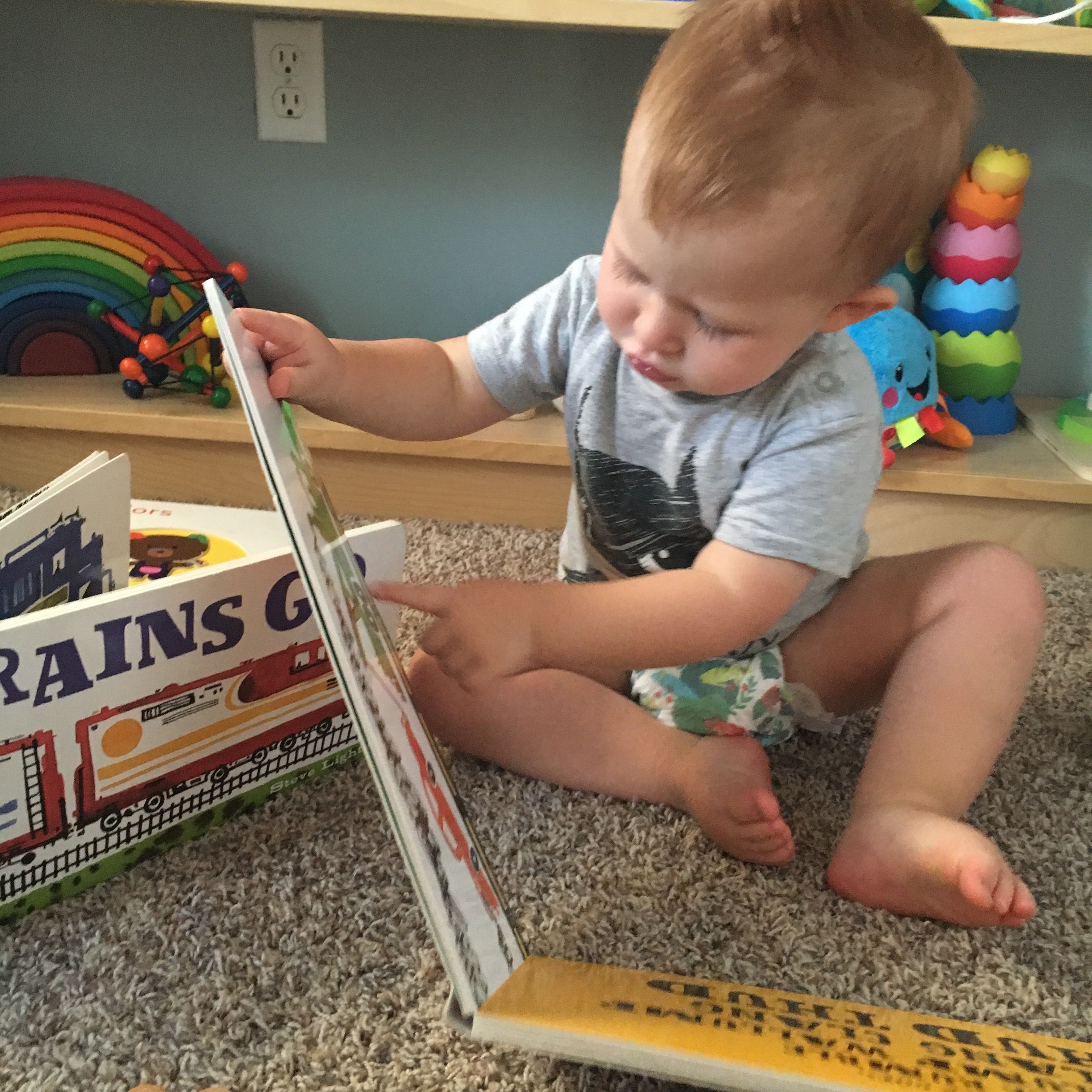 We stumbled across our first read of the series (“Boats Go”) at the library when Rad was still pretty tiny and we were both instantly hooked. He points to them daily and these days he makes connections with these books and the outside world. (At my parents house there were two bulldozers down the street when we were there for our visit and we had to walk to down to see them often. And then we would come home and he would reach for the “Diggers Go” book!)