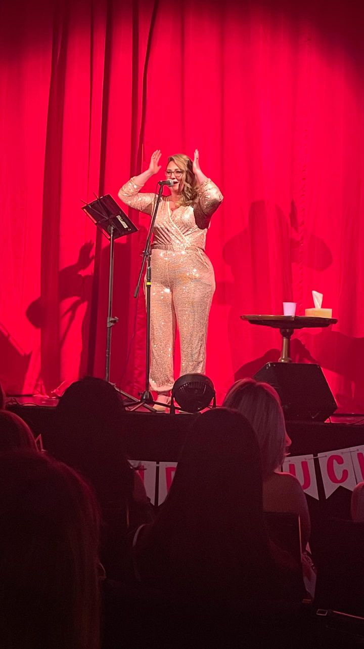 J: About four years ago I started writing poems and it was kind of a cathartic thing for me. And after a little while I came to realize that there was a common thread in my poetry, and that was motherhood. There was another common thread which was that lot of my poems were sarcastic, which you don’t find a lot of times in poems. And then also they all have the same tone about them — they sort of rhyme in the same way, so they’re easy to read, easy to hear — I hope! And then I try to be as obvious as possible in my poems — moms don’t have a lot of time to even read. So I want to make it as easy as possible. And so every Friday, for the past four years, I’ve sent out a Fresh Poem Friday newsletter. So if you’re a subscriber, then every Friday at 10am you get a fresh poem in your email inbox. And then over the evolution of it I realized that my favorite thing about my poems is not necessarily writing them. I actually have a hard time sort of, you know, if I’m doing laundry before writing a poem, it’s like, okay, I’m obviously putting this off, kind of thing. But what I came to realize over the course of Mom Said Duck is that I love to say my poems. And so I was like, okay, so how do I say my poems because there’s not like really a big market for mom poets or funny mom comedians or mom anything kind of thing. So that’s where the show came to be. I thought, okay, I think this is something I’m going to have to create myself. And that’s what I did through the help of a City of Windsor grant. The night went off the exact way I imagined it in my mind that it would, which was really cool. For so long, I was trying to describe it to people and they weren’t getting it. And I was like, you just have to wait until May 10th. And then in my head, I’m like, oh my God, what if it’s not going to be what I think it’s going to be. But I was so sure. I could imagine it so well, so clearly. And it ended up being exactly that. And so I was just so, so thrilled and over the top happy with how it turned out.